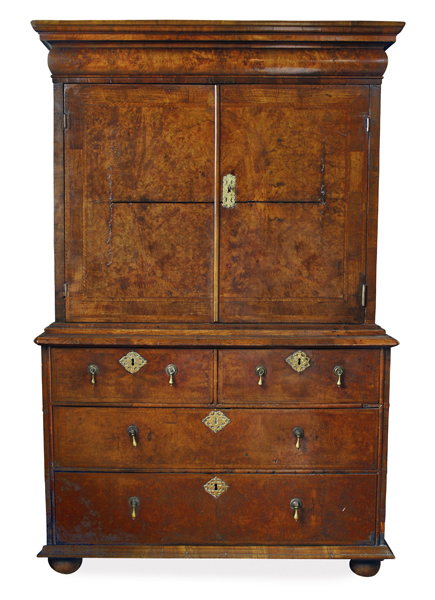 Stepped cornice and an ogee frieze drawer above two panelled doors, with two short and two full length drawers