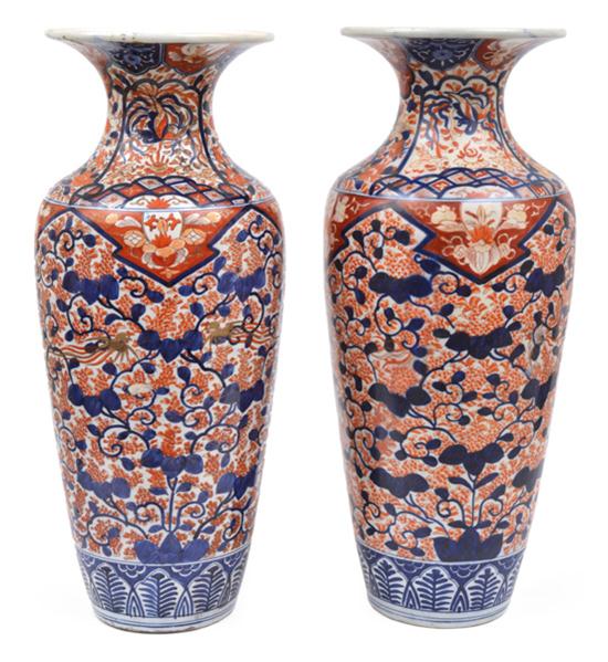 Tapered cylindrical form decorated with red and blue floriate pattern