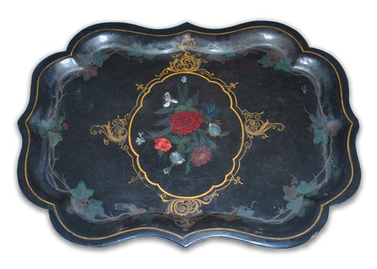 Central rose cartouche painted and inlaid with mother of pearl