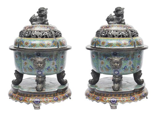 Basin shaped with a quatrefoil rim inset with two beast heads, the cover with fo dog finial