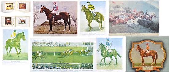 colour supplements, newspaper cuttings and promotional material including a 'Turf Cigarettes' promotional card showing Old Rowley, other horses include Ajax, Auction, Bernborough, Carbine, Comic Court, Howe, Hua, Peter Pan, Phar Lap, Shadow King and Tulloch, in two albums, framed and loose (a lot)