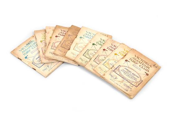 including Autumn Meeting First Day, St Georges Stakes (winner Amounis, Phar Lap 3rd), Futurity Stakes (winner Amounis), Memsie Stakes (winner Wise Force) and Herbert Power Stakes (winner Second Wind), all with pencil annotations, some with page corners removed (10)
