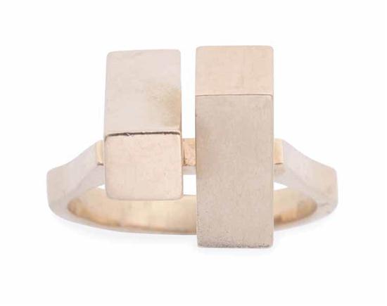 Of abstract modern design, in 14ct gold, ring size T-U.