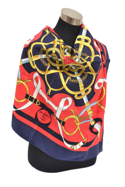 The 'Eperon d'or' design by Henri d'Origny, featuring an equestrian theme styled in gold, red and navy blue, 90cm square.