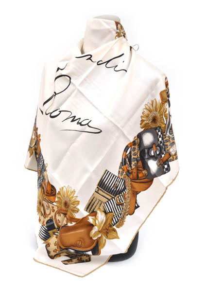 On a classical theme in white and brown tones, signed 'Fendi Roma', 90cm square.