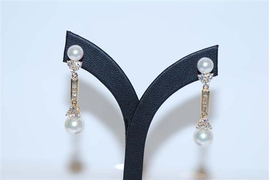 A PAIR OF CULTURED PEARL AND DIAMOND EARRINGS BY MIKIMOTO