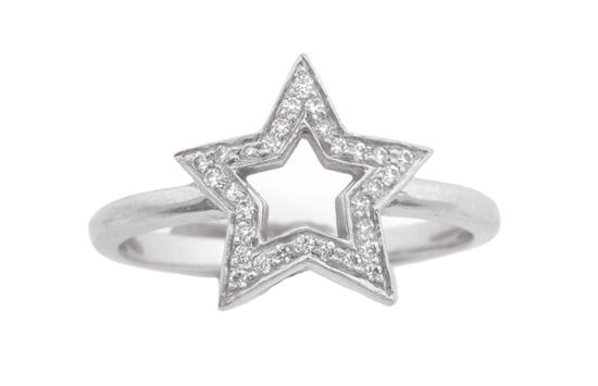The open star grain set with round brilliant cut diamonds, in platinum, ring size L-M.