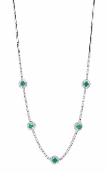 AN EMERALD AND DIAMOND NECKLACE