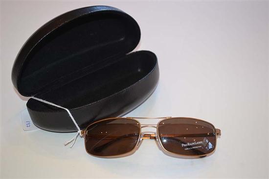 A PAIR OF SUNGLASSES BY RALPH LAUREN - To gold metal frames, with case.
