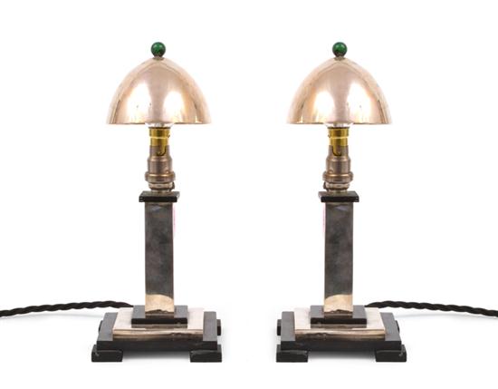 A PAIR OF CONTINENTAL SILVER MOUNTED ART MODERNE LAMPS
