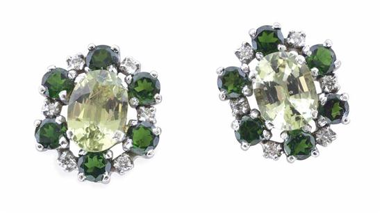A PAIR OF TSAVORITE AND DIAMOND CLUSTER EARRINGS