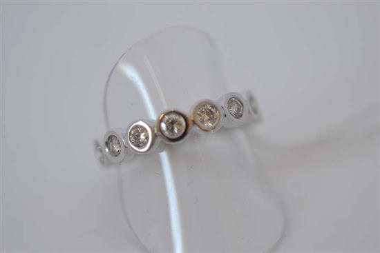 Comprising fifteen round brilliant cut bezel set diamonds totalling 1.50cts, in 18ct white gold, independent valuation available, ring size L-M.