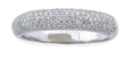 The half round band pave set with round brilliant cut diamonds, in 18ct white gold, ring size N-O.