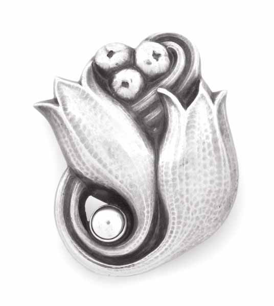 Featuring two entwined stylised tulips in sterling silver, reference 100C.