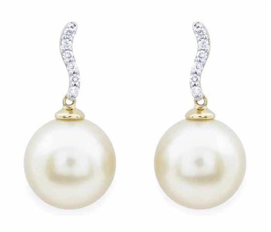 A PAIR OF SOUTH SEA PEARL AND DIAMOND EARRINGS