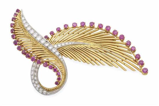 A RUBY AND DIAMOND BROOCH BY KUTCHINSKY