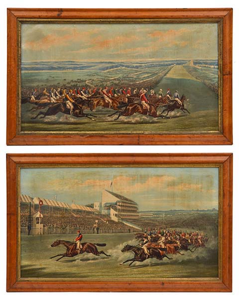 TWO OELOGRAPHS OF HORSE RACING SCENES