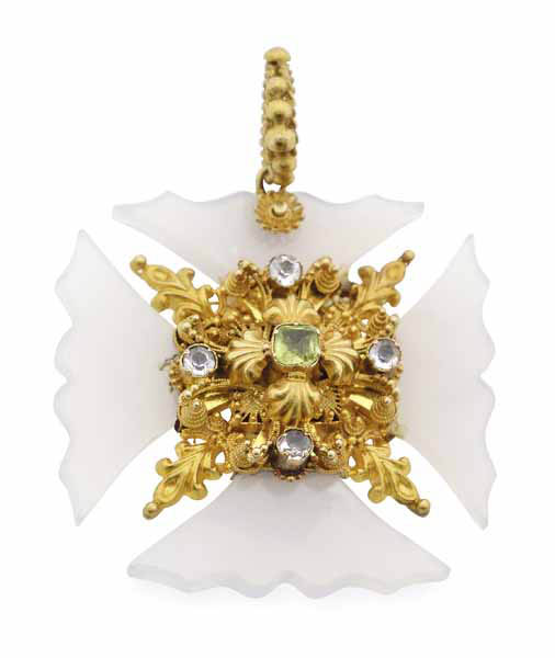 AN EARLY VICTORIAN MALTESE CROSS PENDANT