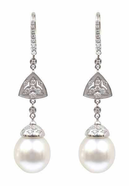 A PAIR OF SOUTH SEA PEARL AND DIAMOND EARRINGS BY AUTORE
