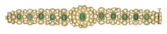 A JAIPUR STYLE EMERALD, DIAMOND AND ENAMEL BRACELET