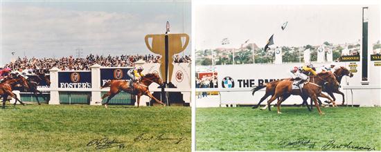 showing finishes of 1997 Melbourne Cup and Cox Plate, framed (2)