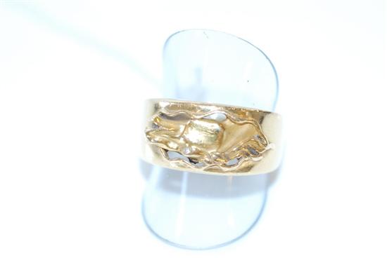 Carved to the centre with a horses head with a diamond set eye, on a wide band, in 18ct gold, ring size M-N