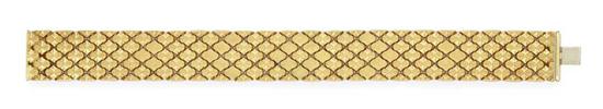 Comprising articulated woven links in textured finishes in 18ct gold, total weight 47.0gms, total length 185mm.