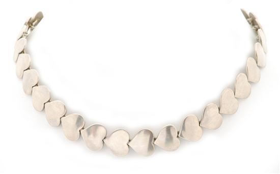 Designed by Hans Hansen, styled as a row of interlinking hearts, in sterling silver, total length 390mm.