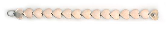 Designed by Hans Hansen, styled as a row of interlinking hearts, in sterling silver, total length 170mm.