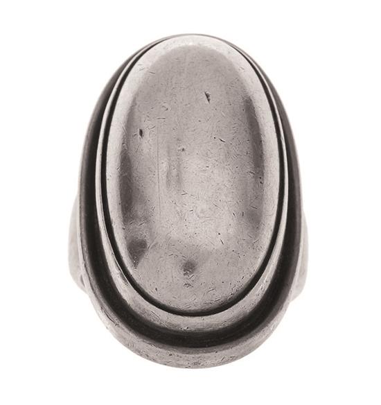 Designed by Harald Nielsen, the large oval dome, in sterling silver, reference 46E, ring size L-M.