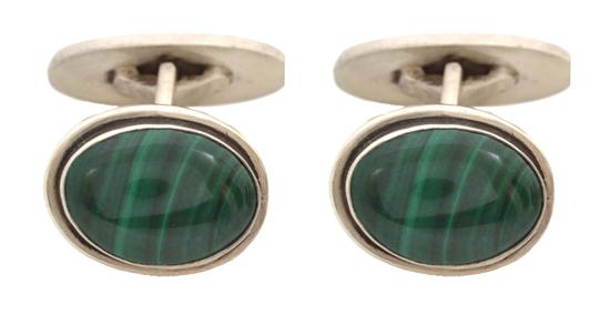 A PAIR OF MALACHITE CUFFLINKS BY GEORG JENSEN