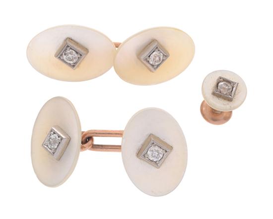 A PAIR OF MOTHER OF PEARL AND DIAMOND CUFFLINKS