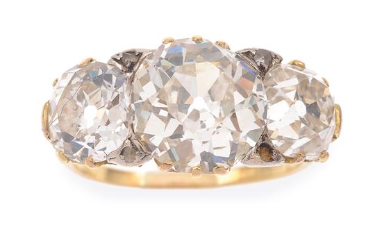 AN IMPRESSIVE THREE STONE DIAMOND RING