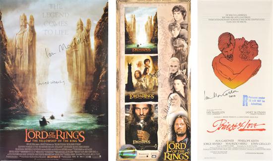 all signed on posters for 'The Fellowship of the Ring', including one signed in black ink by Cate Blanchett, Miranda Otto, Ian McKellen and Hugo Weaving and copies of photographs at time of signing; another signed by McKellen and Weaving; and two unsigned posters; and an Australian daybill for 'Priest of Love signed by McKellen (5)