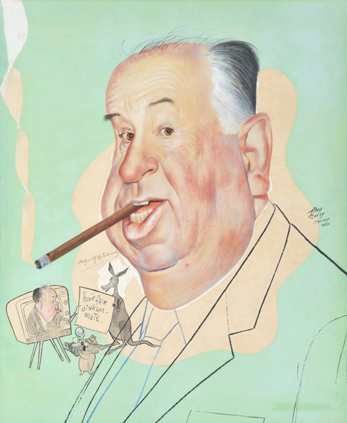 AUTOGRAPHED CARICATURE OF ALFRED HITCHCOCK BY TONY RAFTY