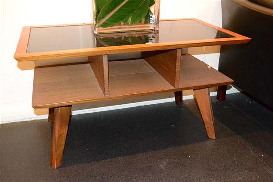 A 1960'S TWO TIER COFFEE TABLE WITH BLACK GLASS INSET