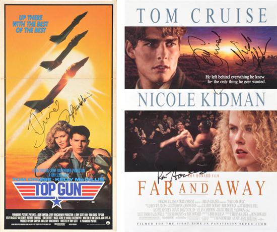 Paramount, 1986, Australian daybill poster signed in black felt pen by Cruise and Producer Jerry Bruckheimer; a Japanese flyer for 'Days of Thunder' signed by Tom Cruise and Nicole Kidman; a poster for 'Far And Away', Universal, 1992 signed by Cruise, Kidman and Ron Howard; and an Australian daybill poster for 'BMX Bandits' signed by Kidman (5)