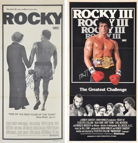 United Artists, 1976, Australian daybill poster signed in black felt pen; and an Australian daybill poster for 'Rocky 3' signed by Mr T (Clubber Lang) (2)