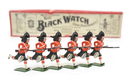 the blackwatch with 7 x charging figures, with rectangular base and Whisstock lid (VG box F)