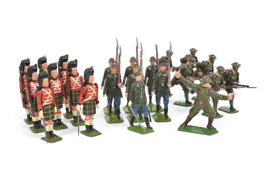BRITAINS NO.1519 HIGHLANDERS, WITH MUSKETS, NO.432 GERMAN INFANTRY AND NO.1613 BRITISH INFANTRY IN ACTION