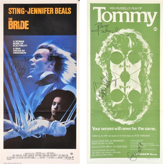 'Tommy', Roadshow, 1975, Australian daybill poster signed in black felt tip by Roger Daltrey and Pete Townsend and signed and inscribed 'Eric Clapton 2007'; and an Australian daybill poster for 'The Bride', Columbia, 1985, signed by Sting (2)