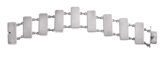 Designed by Astrid Fog, comprising wide rectangular links in sterling silver, total length 200mm, reference 184, total length 195mm.