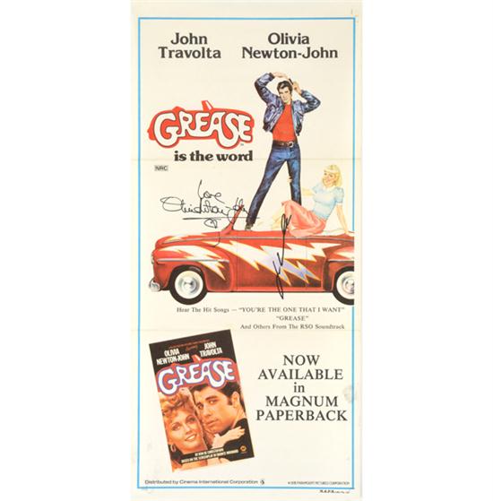 POSTER FOR GREASE SIGNED BY JOHN TRAVOLTA AND OLIVIA NEWTON JOHN