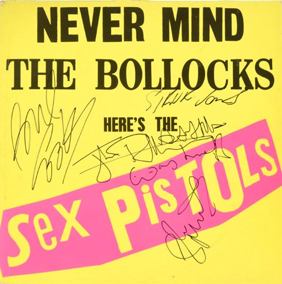 AN AUTOGRAPHED COPY OF THE ALBUM NEVER MIND THE BOLLOCKS HERE'S THE SEX PISTOLS