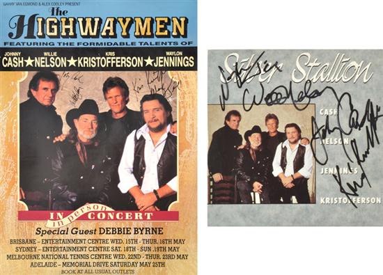 Australian tour poster signed in black felt tip by the late Johnny Cash, Willie Nelson, Kris Kristofferson and Waylon Jennings; and a signed CD for the single 'Silver Stallion'; and two Australian daybill posters signed by Willie Nelson (4)