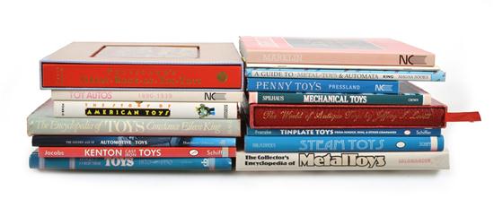 including Presslands Great Book of Tin toys, signed, and 17 x other titles including books on cast iron and tin toys, Marklin, Guide to Metal toys and Automata and others (18)