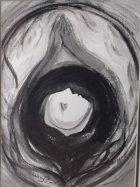 LUCY BOYD BECK, FIGURE IN A WOMB, INK AND WASH, 50 x 35cm