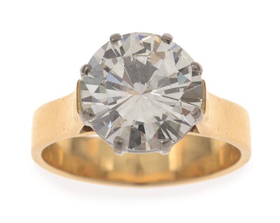 The round brilliant cut diamond weighing 3.80cts, in an eight claw setting, in 18ct gold, independent valuation available, ring size R-S.