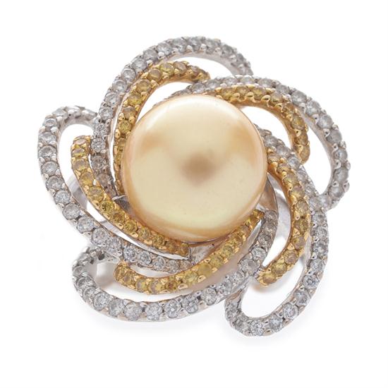 A SOUTH SEA PEARL AND COLOURED DIAMOND RING