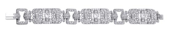Comprising articulated rectangular diamond set panels, set with old European and single cut diamonds totalling 18.55cts, in platinum, total length 195mm, independent valuation available.
